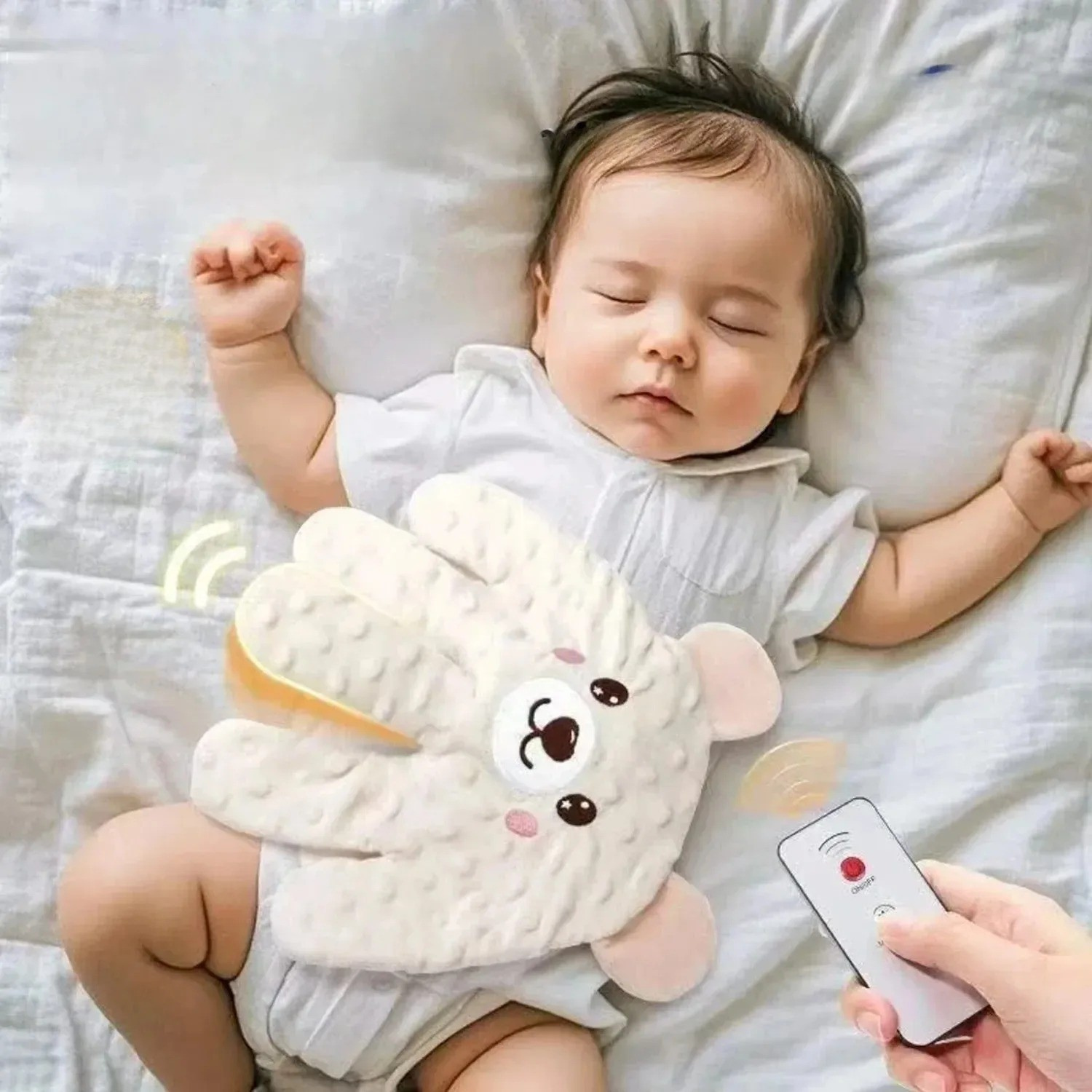 The gentle rhythmic tapping mimics the natural patting motion parents use to calm their baby, helping the nervous system relax and reducing startle reflexes that often cause frequent wake-ups.