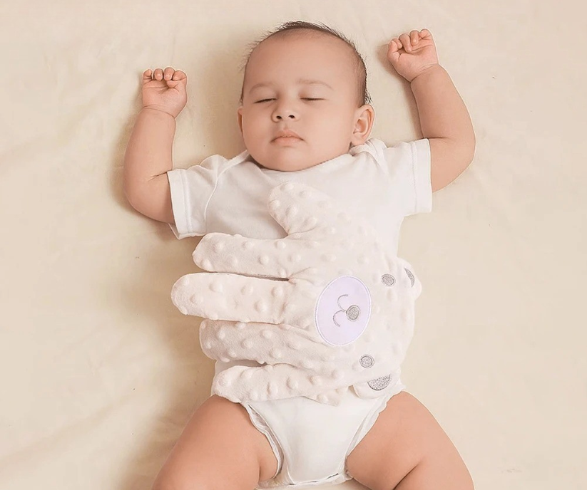 During pregnancy, babies spend months in a warm, confined environment with constant gentle pressure and rhythmic movement. After birth, this sudden absence of those sensations can overwhelm their still-developing nervous system — especially during sleep.